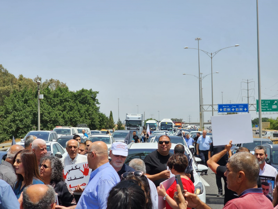 أغلقت مظاهرة قافلة السيارات التي تنظمها لجنة المتابعة العليا احتجاجًا على تفشي العنف والجريمة في المجتمع العربي، شارع 6 وشلت حركة السير فيه.