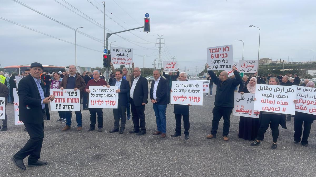 ورفع المتظاهرون شعارات تؤكد أن الأرض "ليست للبيع"، وأن التعويضات المعروضة "لا تلبّي الحد الأدنى من العدالة"، مشددين على أن مصادرات الأراضي تُشكّل اعتداءً مباشرًا على حق المواطنين العرب في الأرض والعيش الكريم.