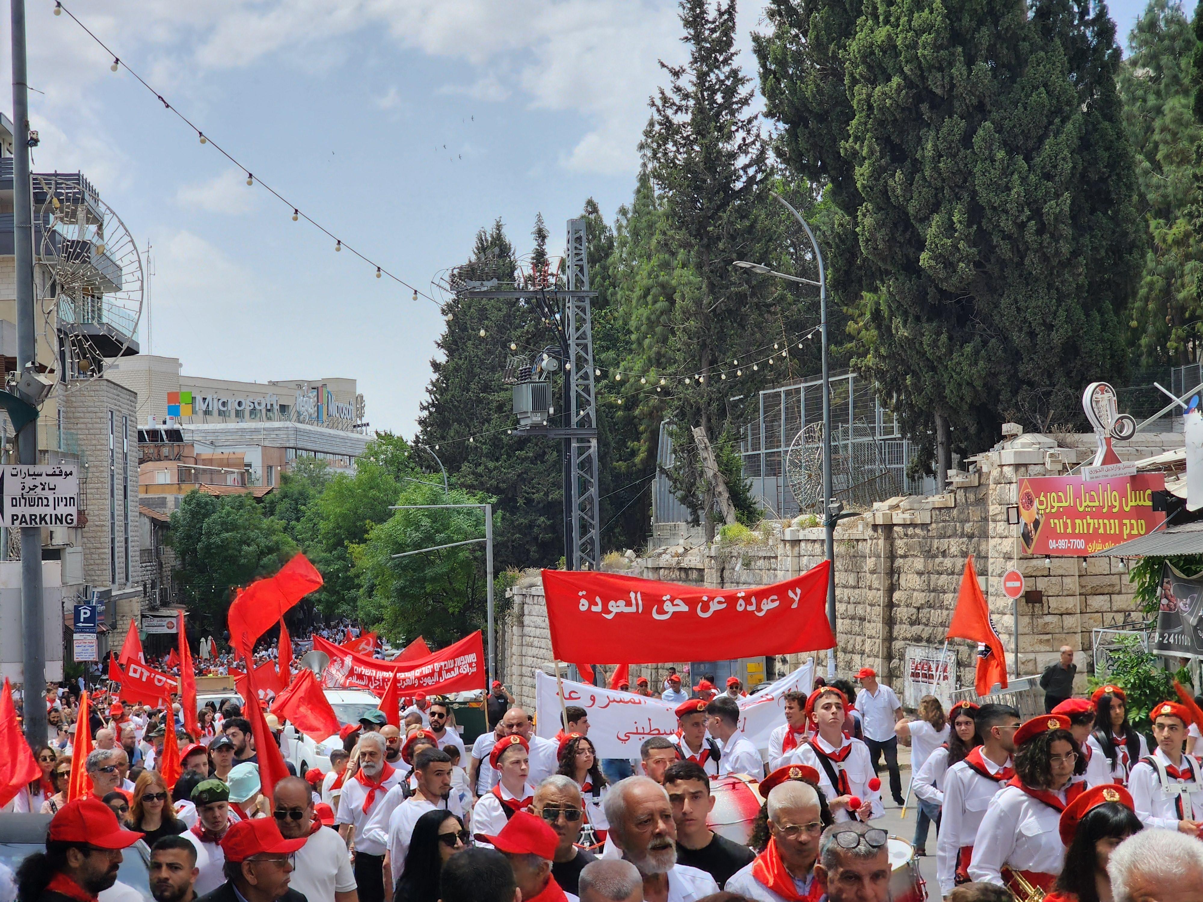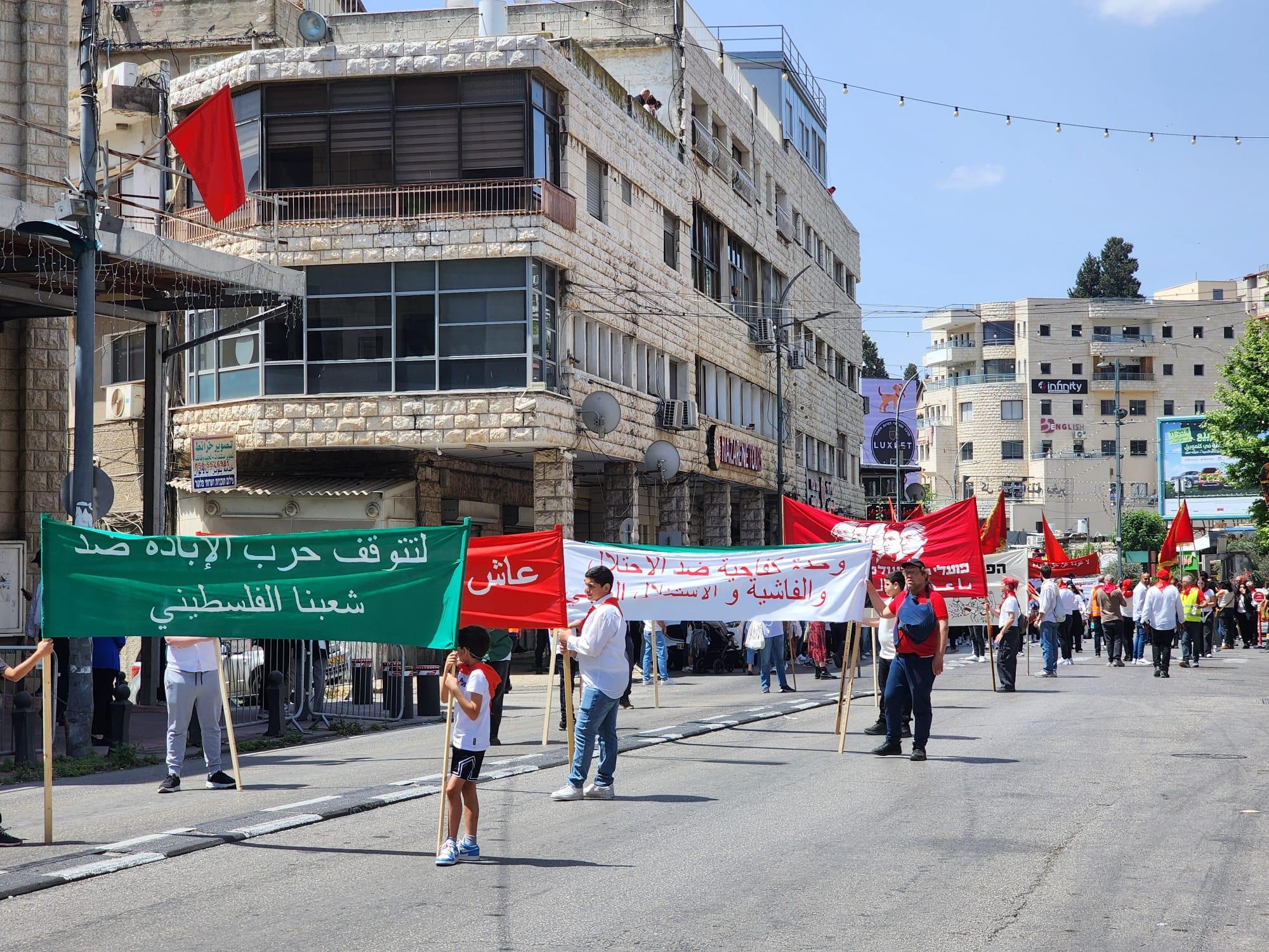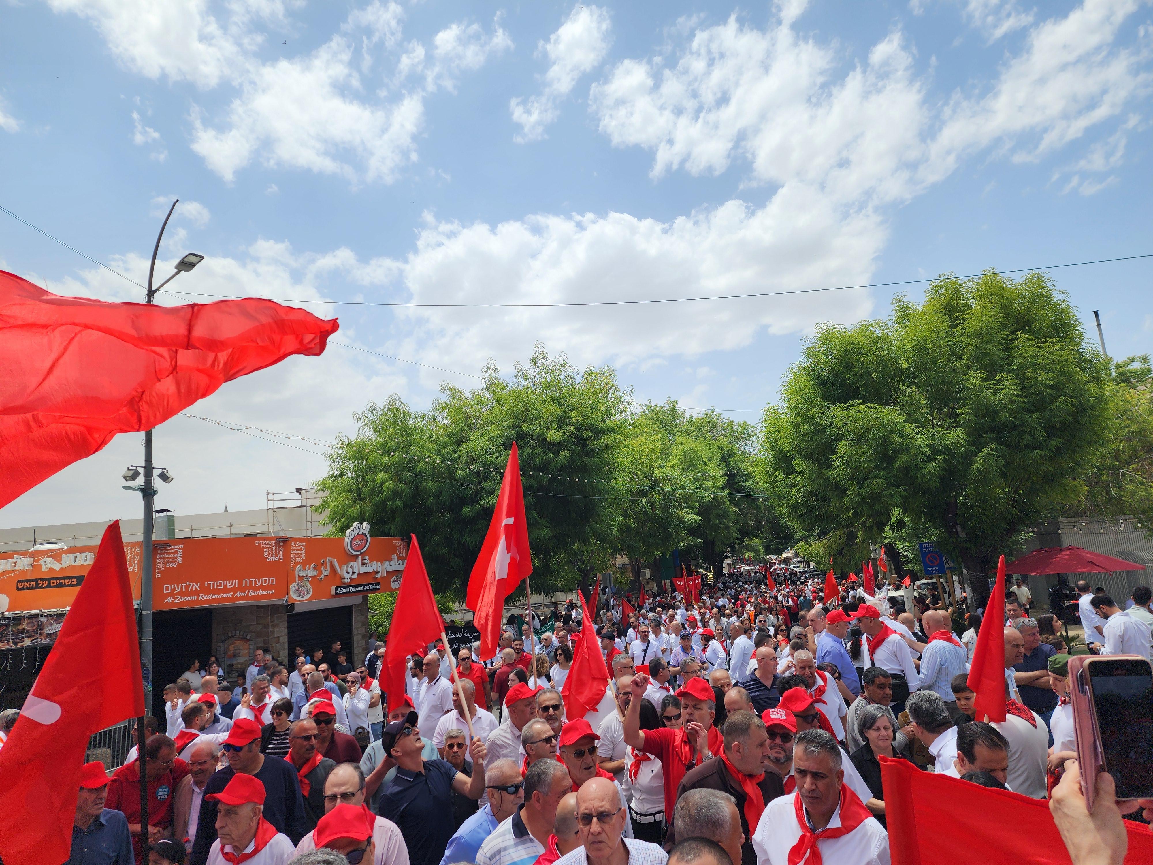 شهدت مدينة الناصرة، ظهر اليوم السبت، مسيرة الأول من أيار القطرية الجبّارة، بدعوة من الحزب الشيوعي والجبهة الديمقراطية للسلام والمساواة والشبيبة الشيوعية، بمشاركة الآلاف من مختلف أنحاء البلاد.