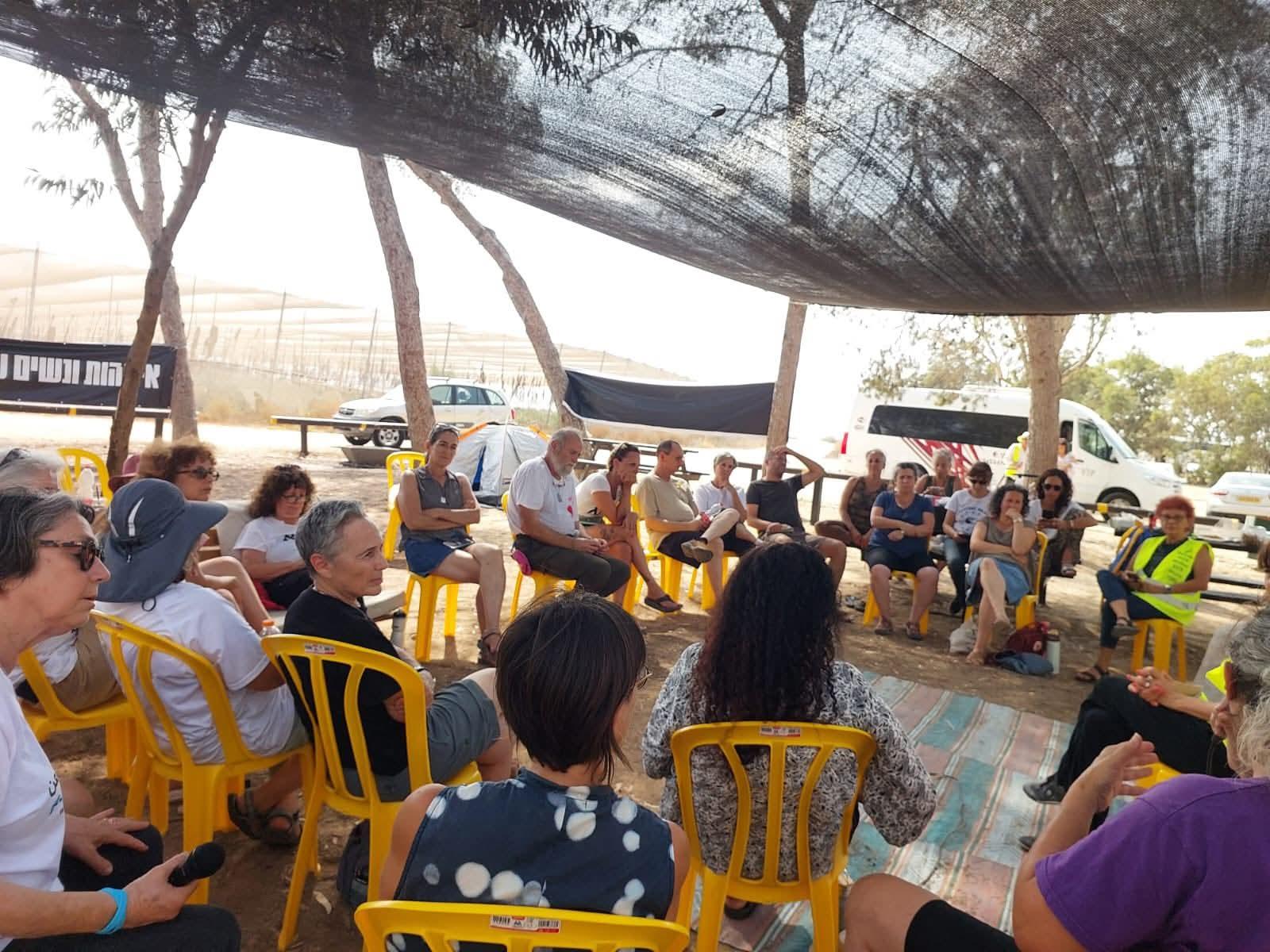 وواصلت المشاركات لاحقًا إلى خيمة الاعتصام في غلاف غزة، حيث تواصل منذ ثلاثة أيام فعاليات نسوية تنظمها ائتلافات من منظمات الأمهات والنساء، للمطالبة بوقف الحرب والتجويع، والتوصل إلى اتفاق لتبادل الرهائن والأسرى.