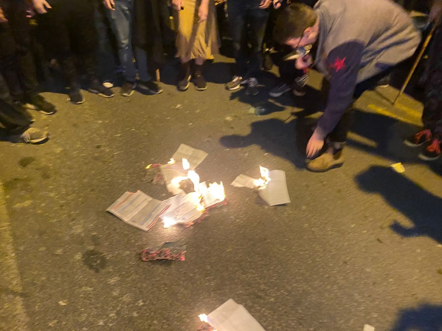 Now in Tel Aviv - Israeli youth burn conscription warrants to the occupation military.